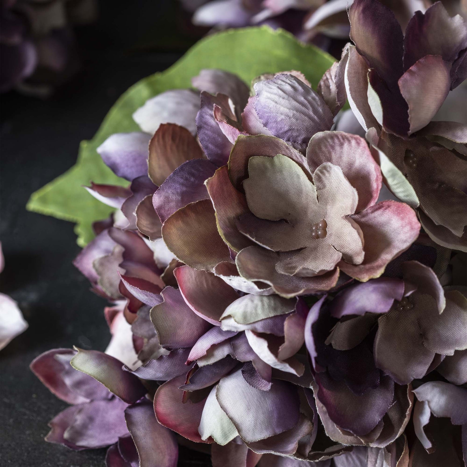 Faux hydrangeas are such a timeless addition to any botanical collection, and this stunning damson-hued Artificial Hydrangea Bunch will hit all the right notes. A beautifully versatile bunch of stems with soft, voluminous heads, add this floral bunch to your favourite vessels on its own, or pair it with an array of contrasting textural stems and faux foliage for an uplifting and elegant flower bouquet. Each bunch has three stems.