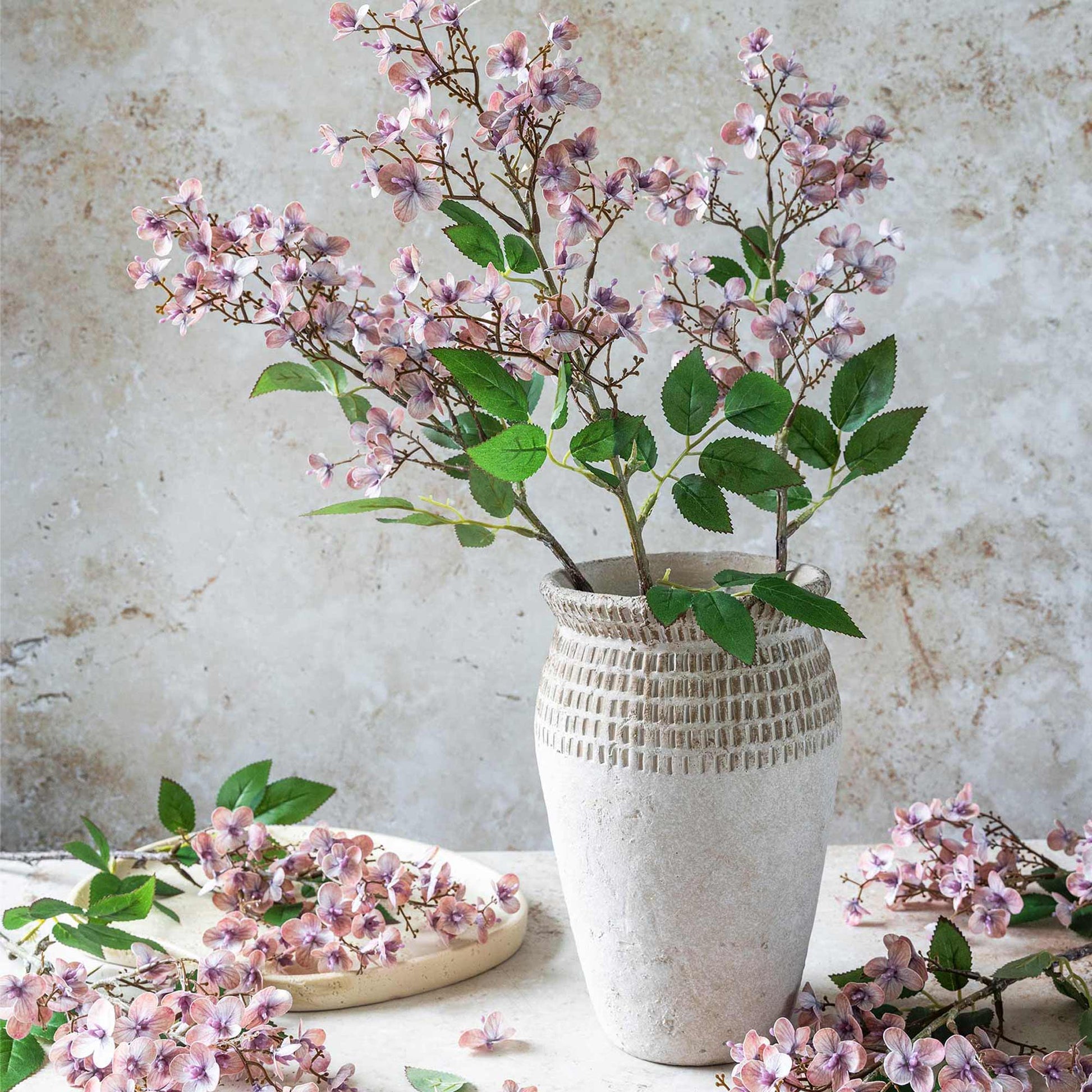 In the softest of hues, the Artificial Japanese Cherry is a fabulous stem. Providing the fullness of foliage, it truly completes any botanical gathering, adding a delicacy and depth to larger headed botanicals. Gorgeous in all vases, the Japanese Cherry will add a glorious shot of colour to your space.