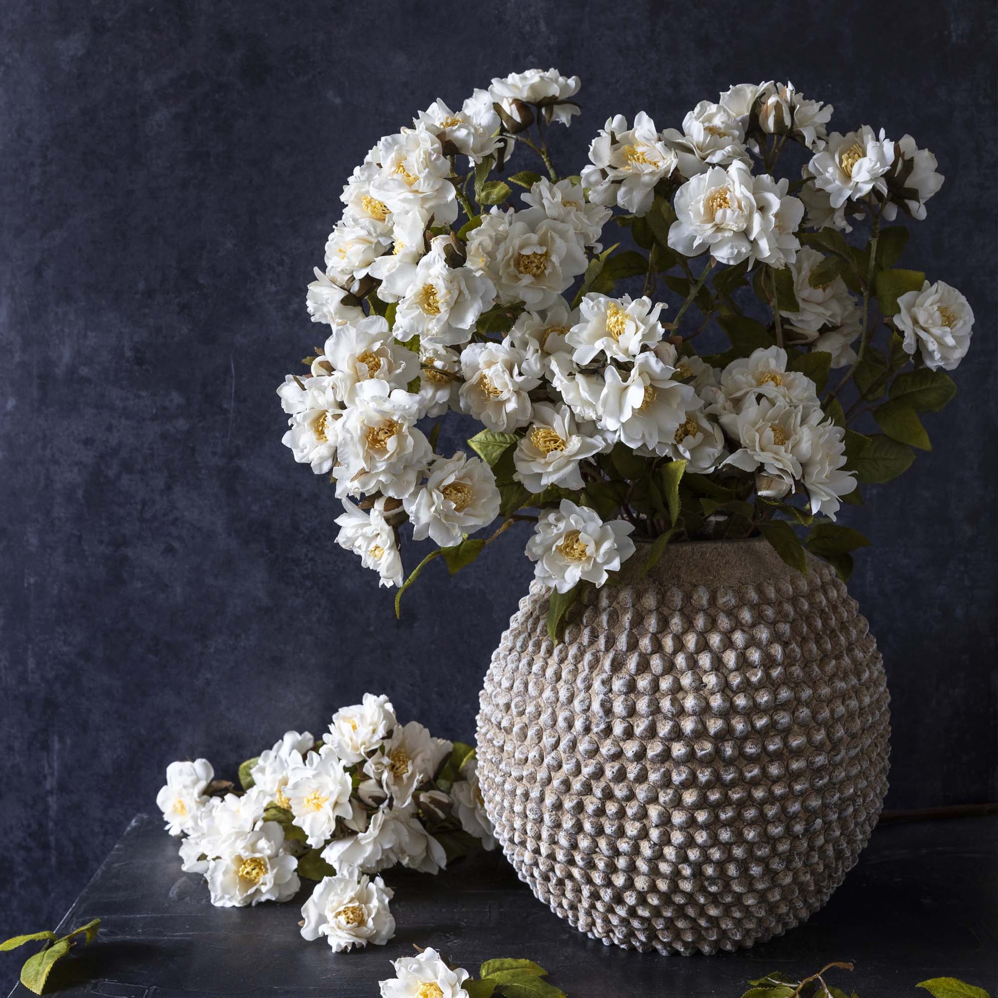 Our Artificial Rose Spray, Cream is sold as a single stem. Shown in the large Aldan Vase with 12 stems.