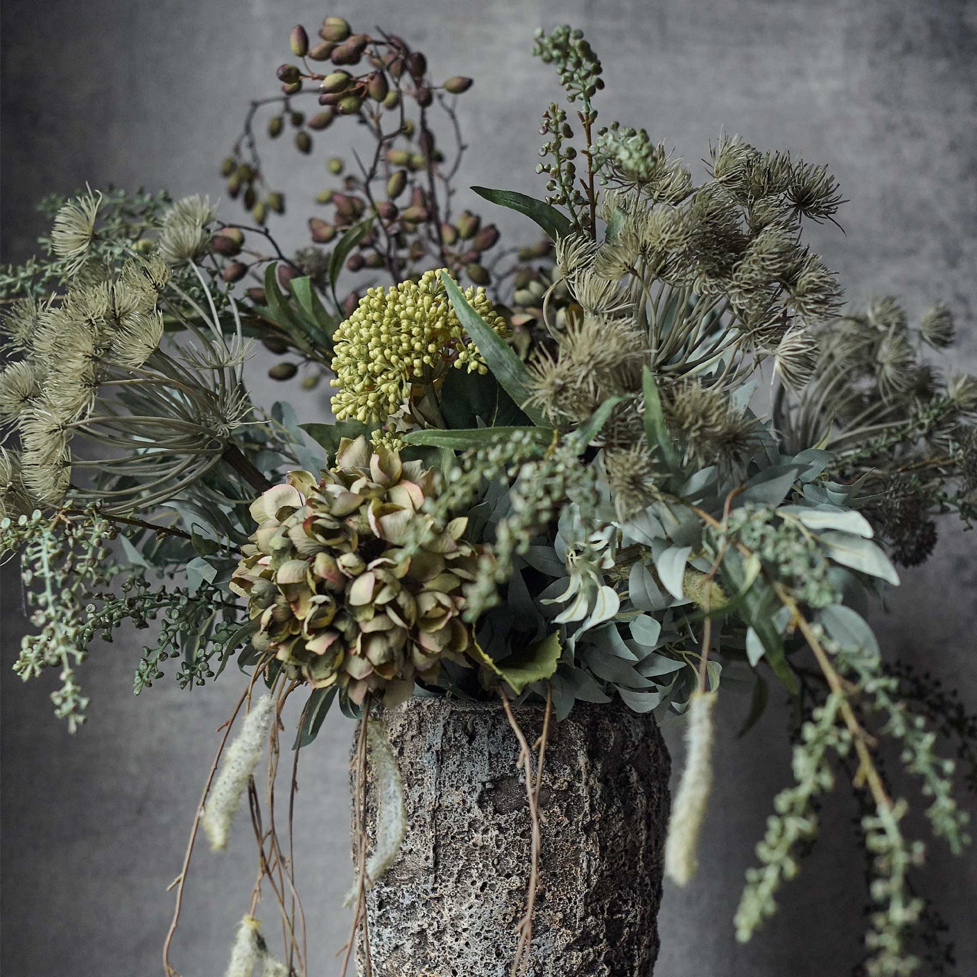 Foliage is key for larger gatherings of flowers, it adds such an important dimension and showcases blooms so beautifully. In a gorgeous emerald tone, this faux willow will add height, volume and abundance to your flowers, providing the perfect backdrop year round as your flowers transition through the seasons.