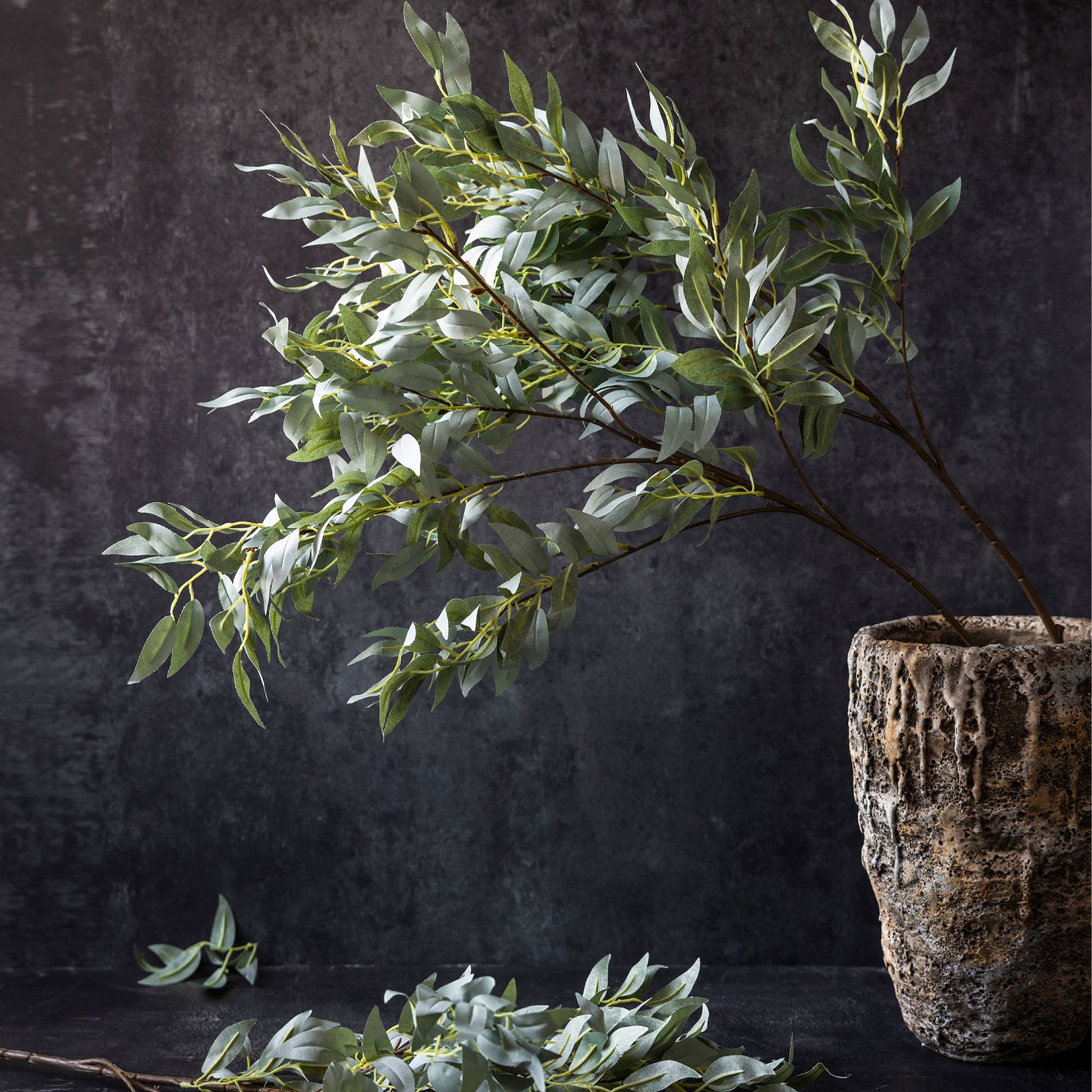 Our Artificial Willow Emerald is sold as a single stem. Shown in the Large Odette Vase with 2 stems.